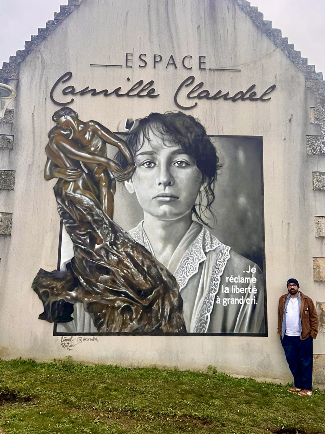 Une murale rendant hommage à Camille Claudel, immense artiste sculptrice. Elle a voué sa vie à son art, traversant une existence tourmentée. Internée les trente dernières années de sa vie à l’hôpital psychiatrique sur décision de sa mère, elle a connu une fin tragique, elle qui défendait la liberté. Apprentie de Rodin, elle en tombe éperdument amoureuse, mais ne recevra jamais la reconnaissance qu’elle mérite.